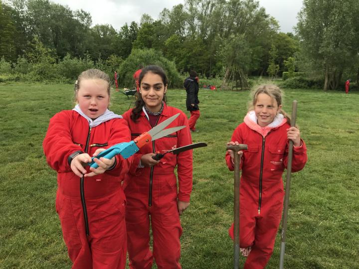 Laat de kinderen nu verder het perceel met de sikkel maaien.